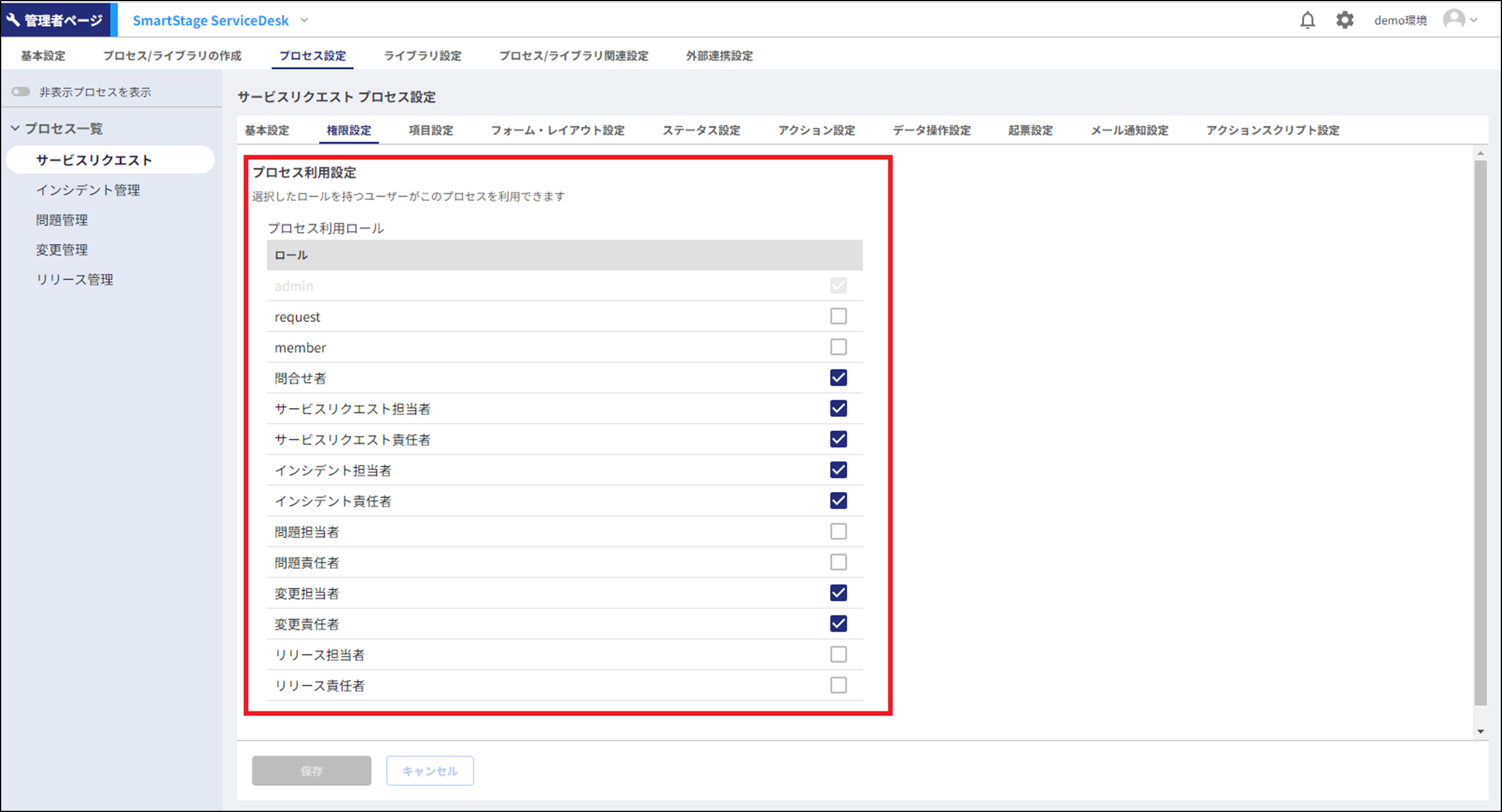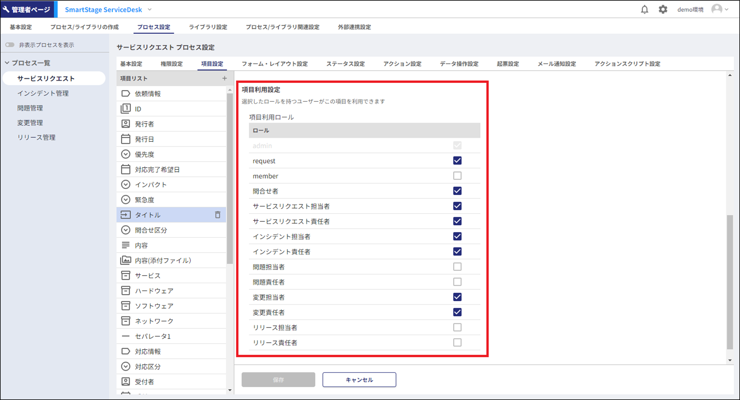 SmartStageでは、以下の項目に対して、ロールに応じた権限設定が可能です。