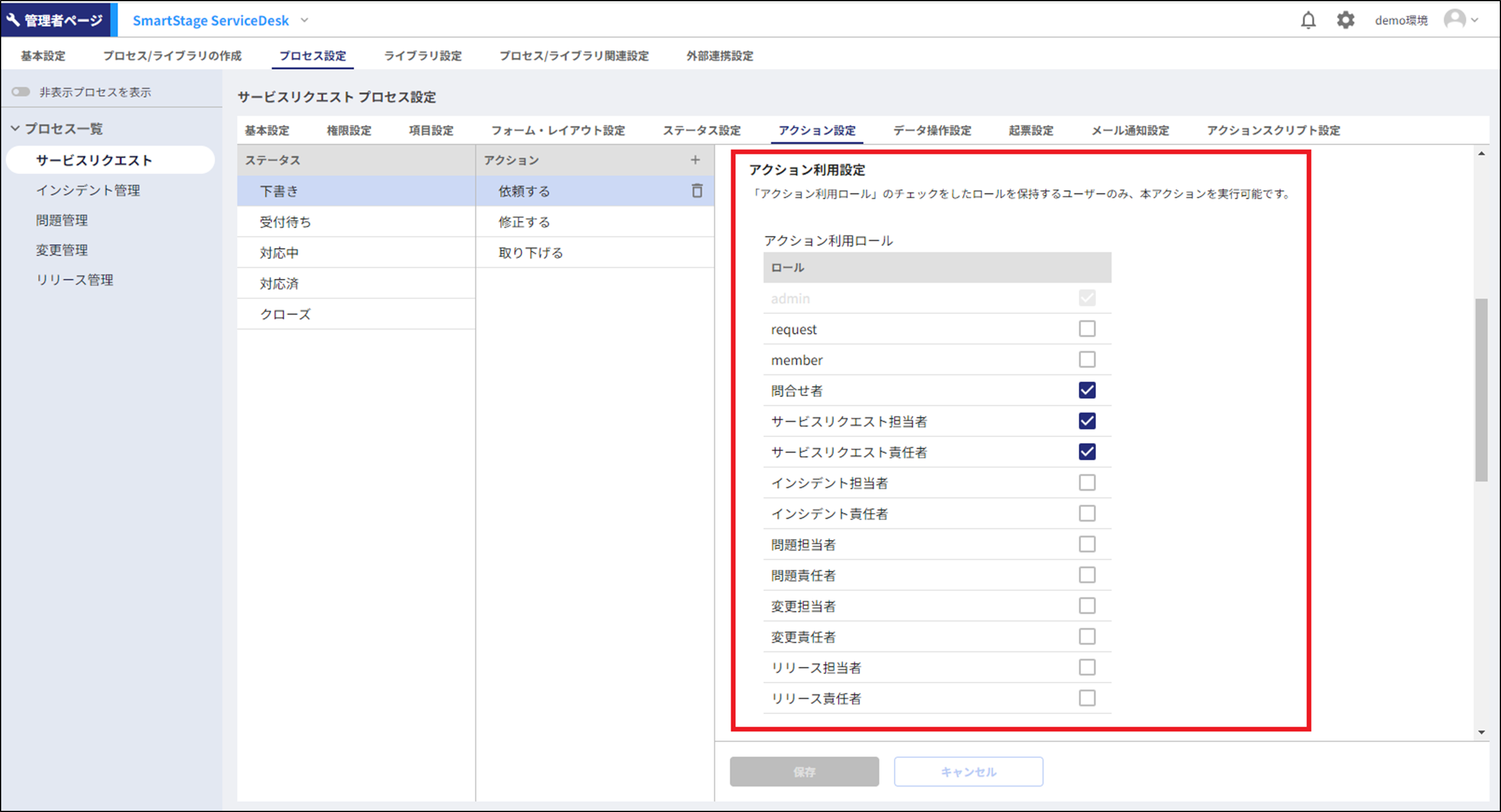 ※上記設定の詳細は「アクションの利用権限を変更する」を参照してください。