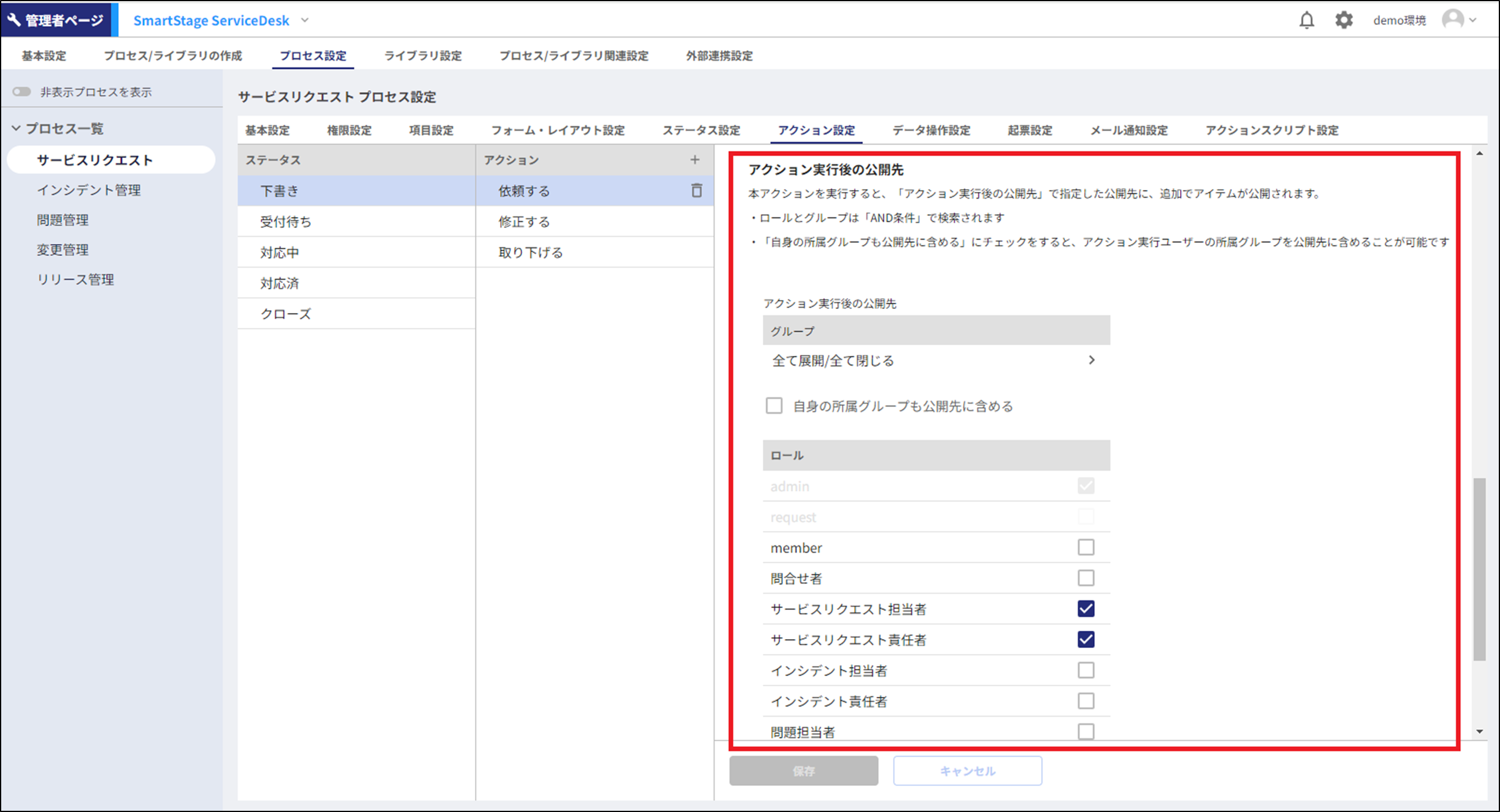※上記設定の詳細は「アクション実行後のアイテム公開先を変更する」を参照してください。